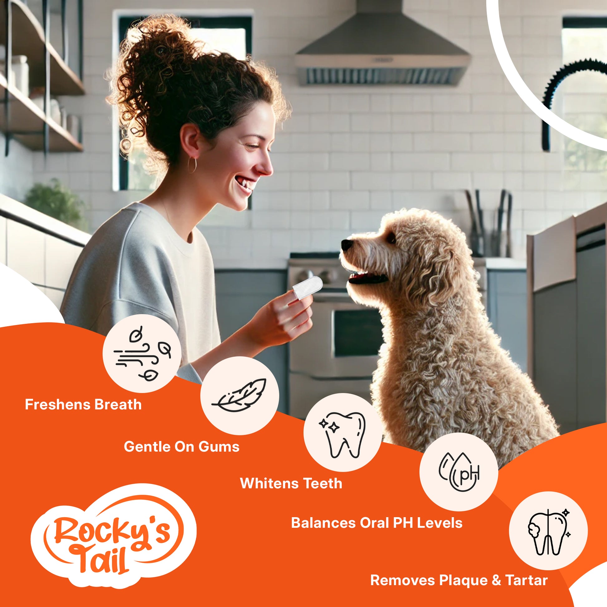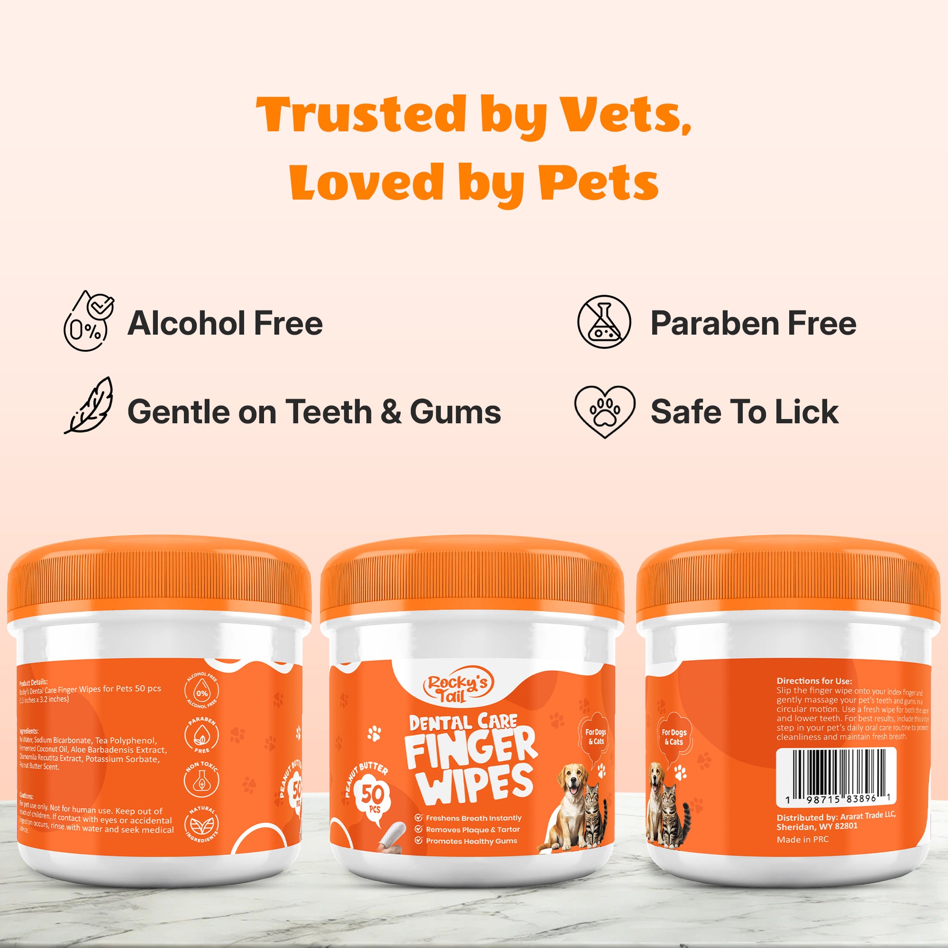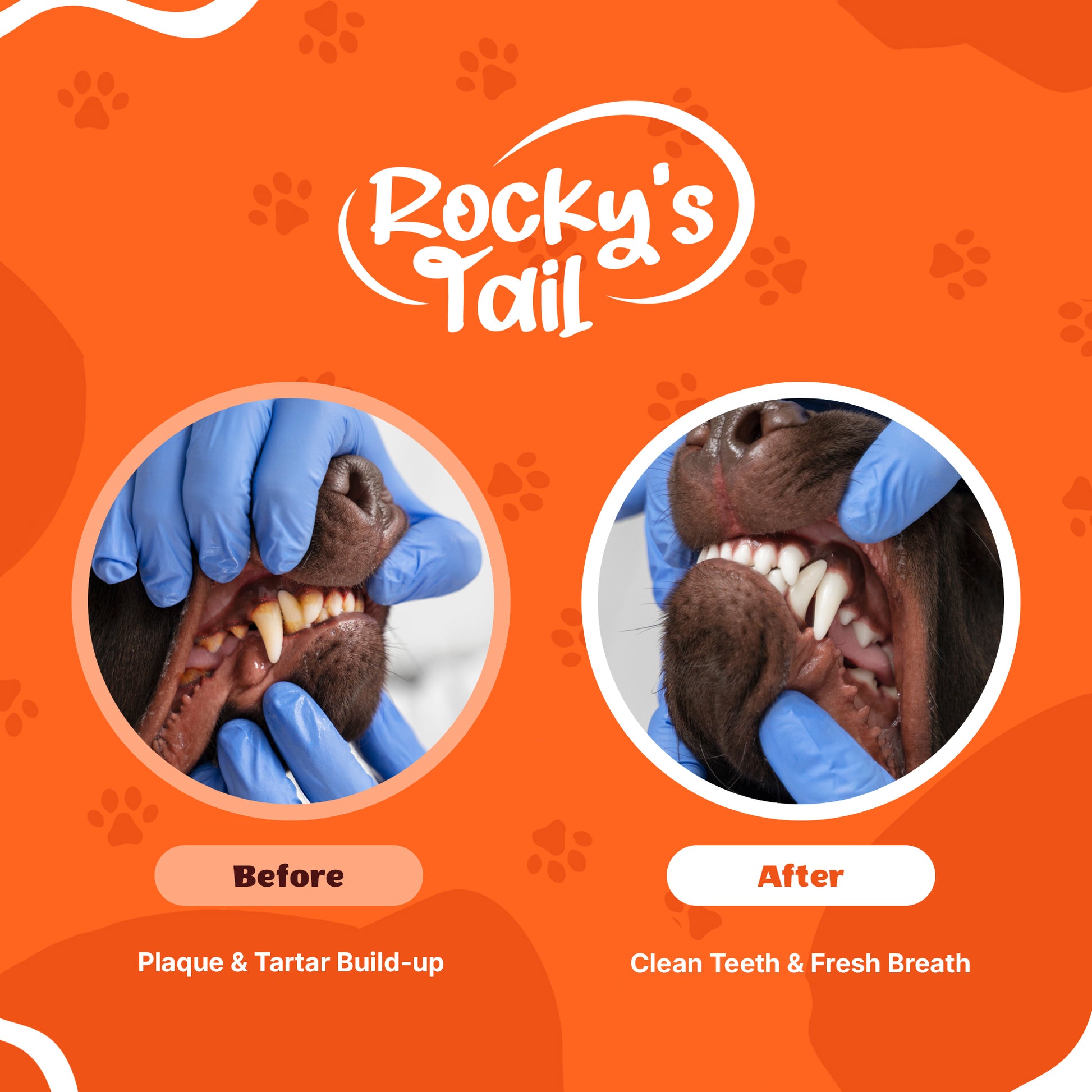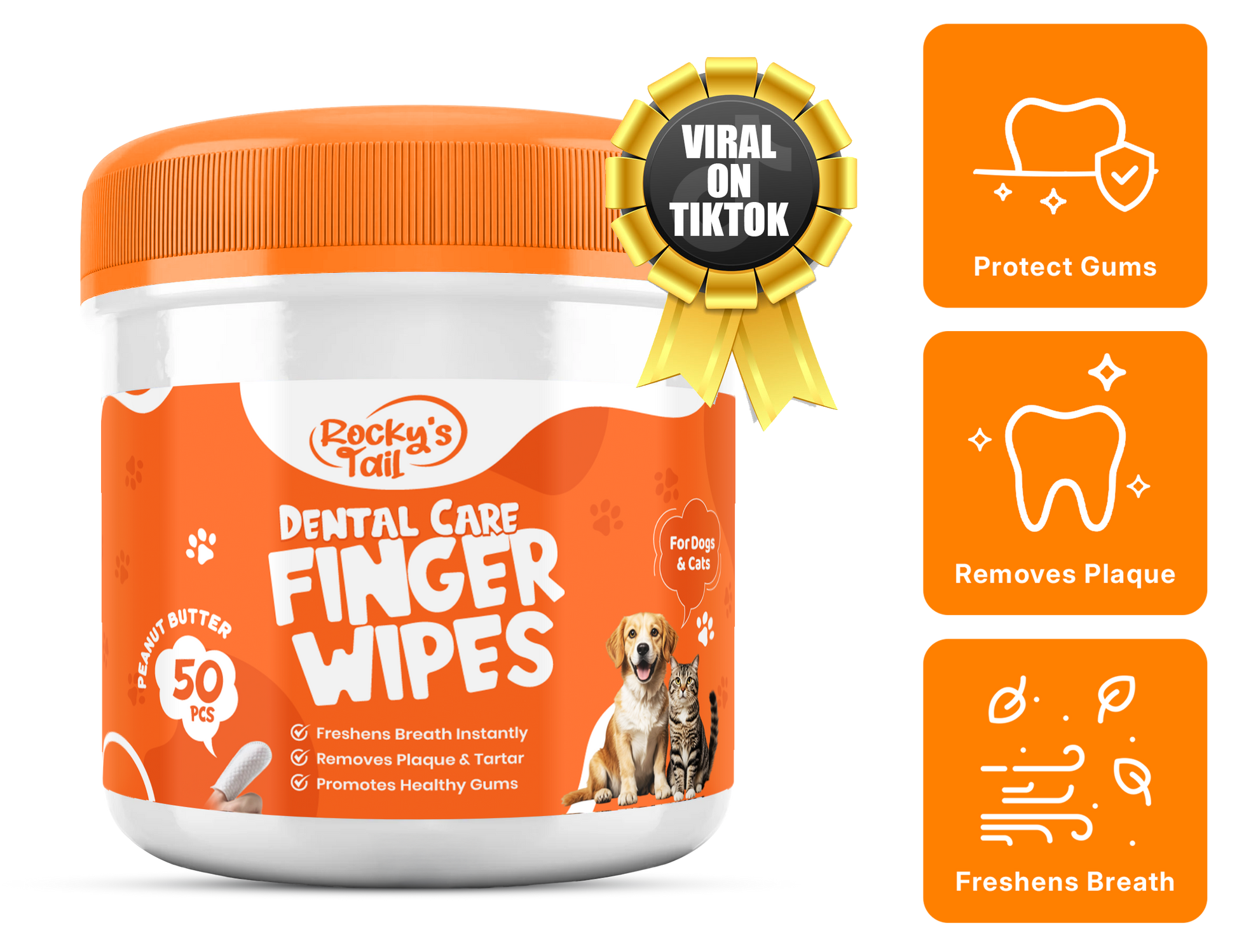 Make dental care easy with Rocky’s Tail Dental Care Finger Wipes! These convenient, mess-free wipes are infused with natural enzymes to help remove food particles, reduce plaque, and freshen breath gently and effectively.